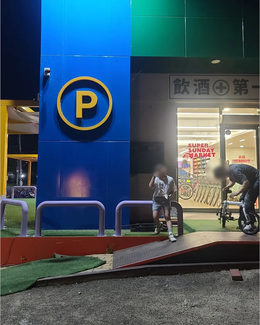 아이 키가 약 140cm 정도인데, 안장을 최대한 올리면 내가(엄마가) 타는 것도 가능했다. 아이가 힘들어할 때마다 자전거를 바꿔 타고 아빠가 뒤에 태워서 가니 훨씬 수월하게 이동할 수 있었다.
