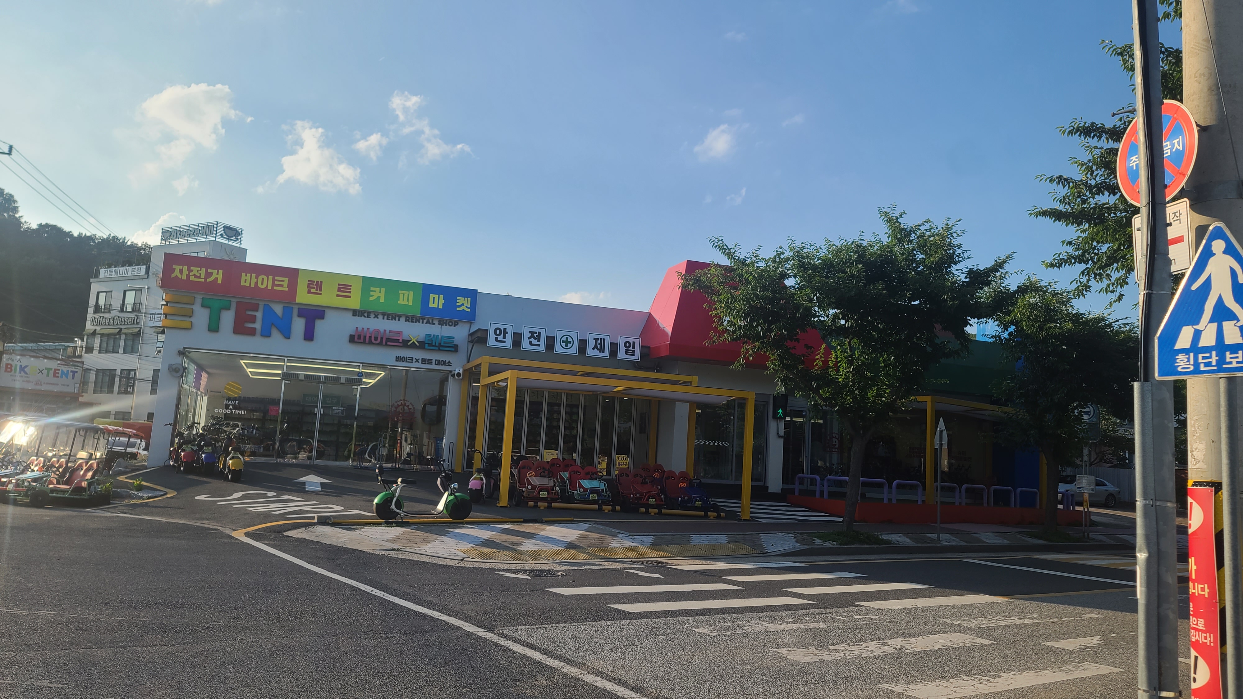 대여점은 입구에 두 곳이 있고 , 안쪽 주차장에 한 곳이 있다.
