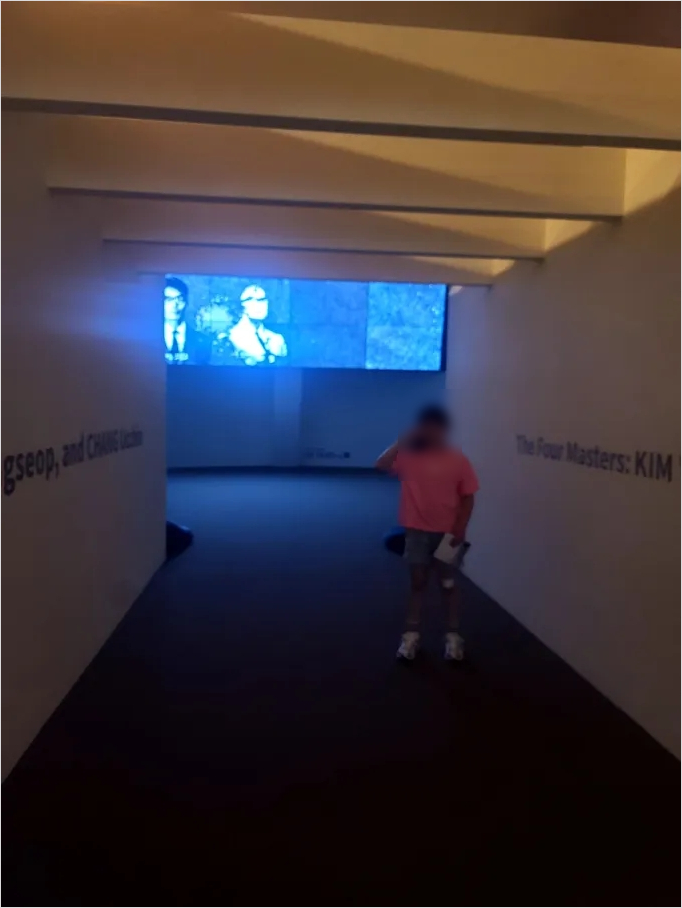 설렘을 가득안고 어둑한 통로에 들어서면 작가 소개 영상이 흘러나온다.
