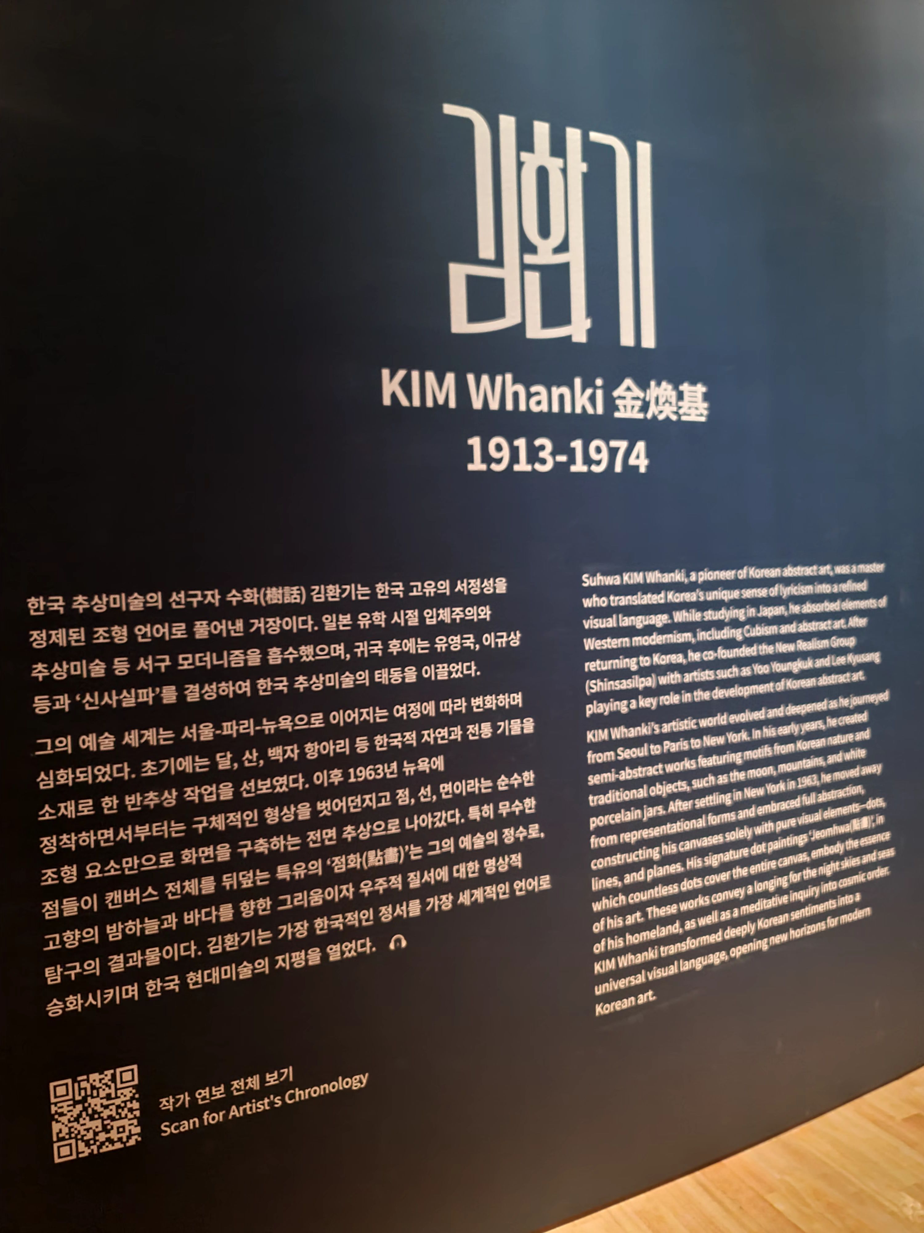 전시장 가운데에 크게 배치된 김환기의 점화 시리즈는 시각적 충격이었다. 파란색 점들이 만들어내는 반복과 리듬 속에서, 자연과 우주, 그리고 시적인 감성이 동시에 느껴졌다. 특히 ‘산월(山月)’은 압도적인 분위기!