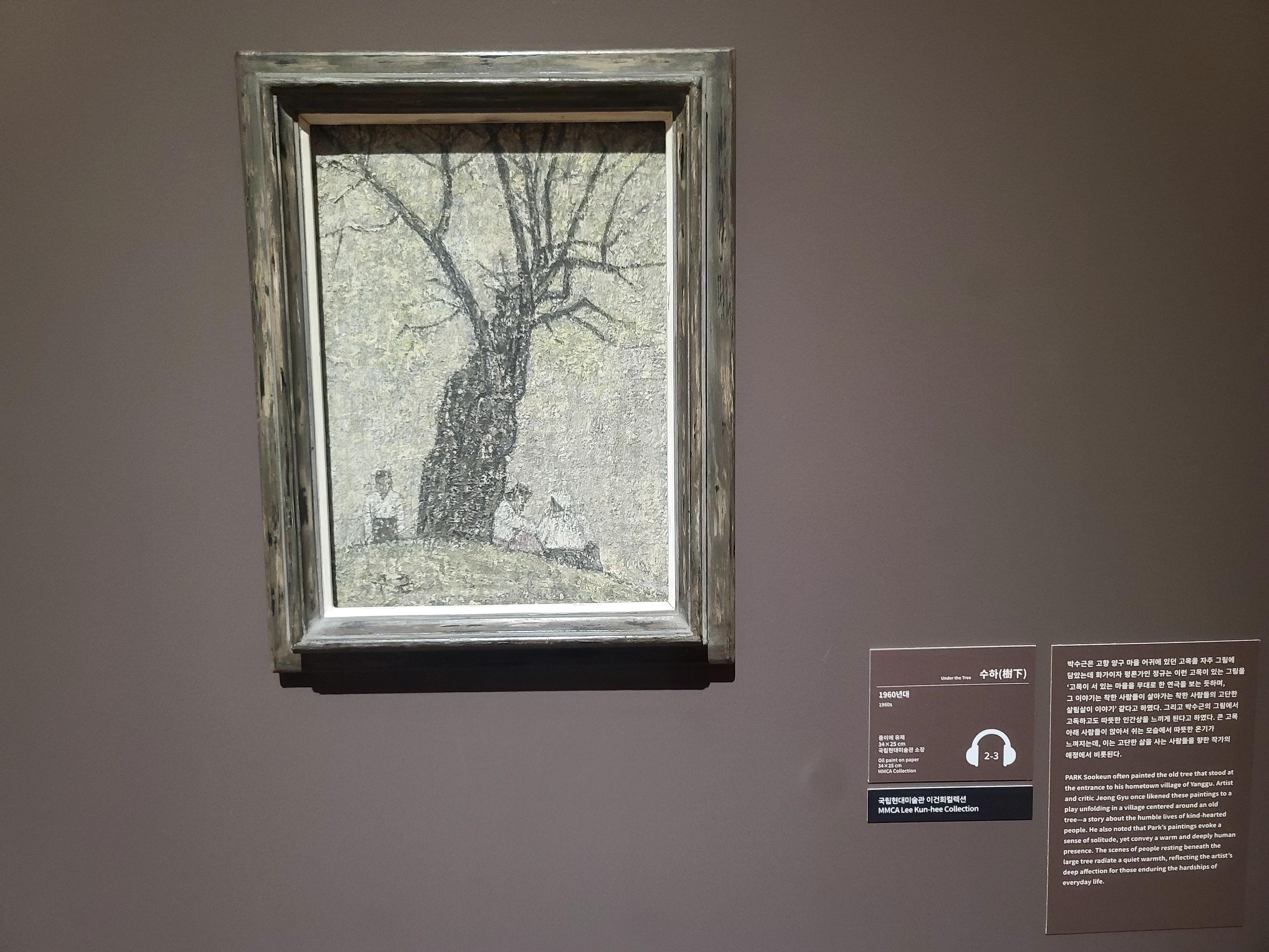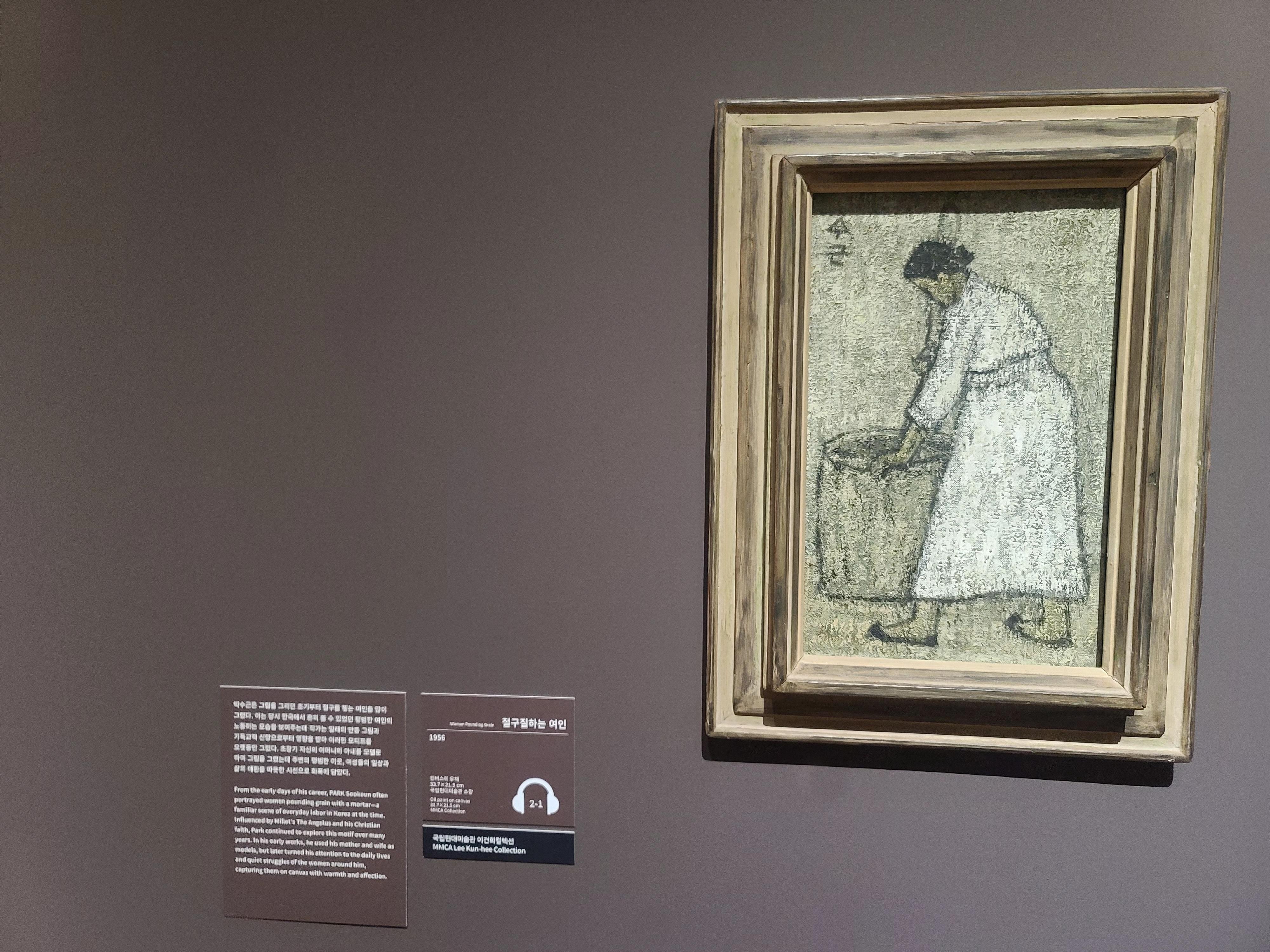 박수근의 작품에서는 투박하지만 따뜻한 일상이 보였다. 특히 ‘빨래터’ 같은 그림은 어릴 적 할머니와 함께했던 풍경을 떠올리게 했다. 거친 마티에르(표면질감)로 표현된 사람들과 배경이 정말 감동적이었다.