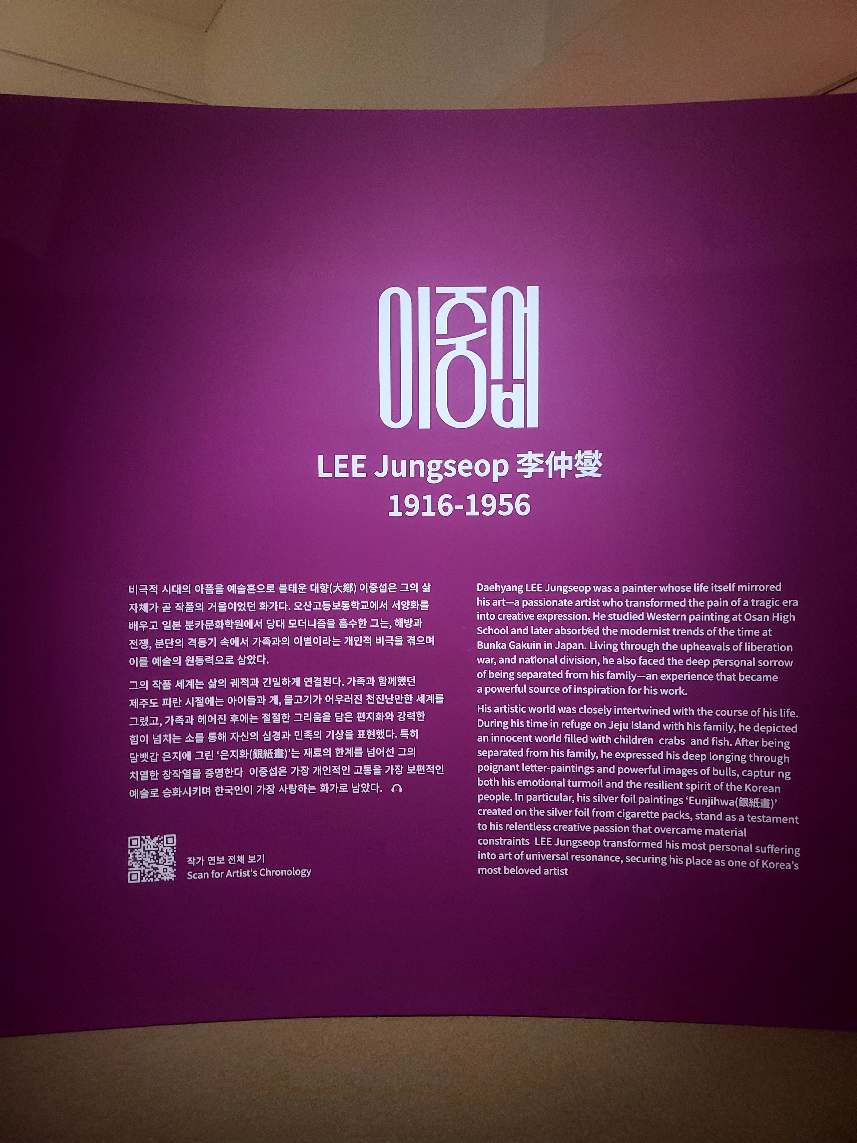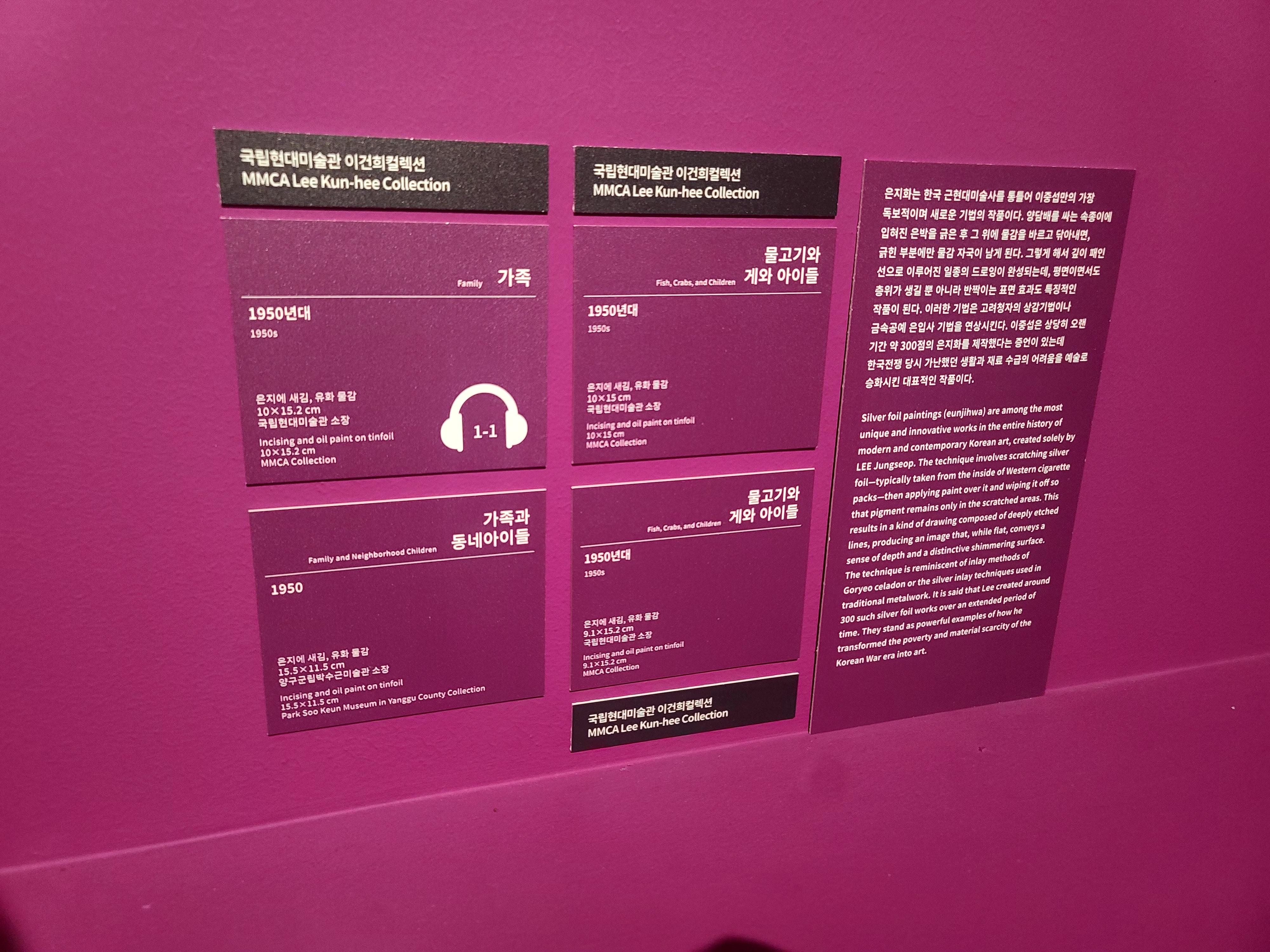 전시장 입구에서 가장 먼저 마주한 이중섭. 그의 ‘은지화’는 정말 작고 소박하지만, 당시의 절박한 감정이 그대로 전해져서 눈시울이 붉어질 정도였어요. 전쟁과 이별, 가난 속에서도 가족을 향한 사랑을 담은 그림들이 인상 깊었다.