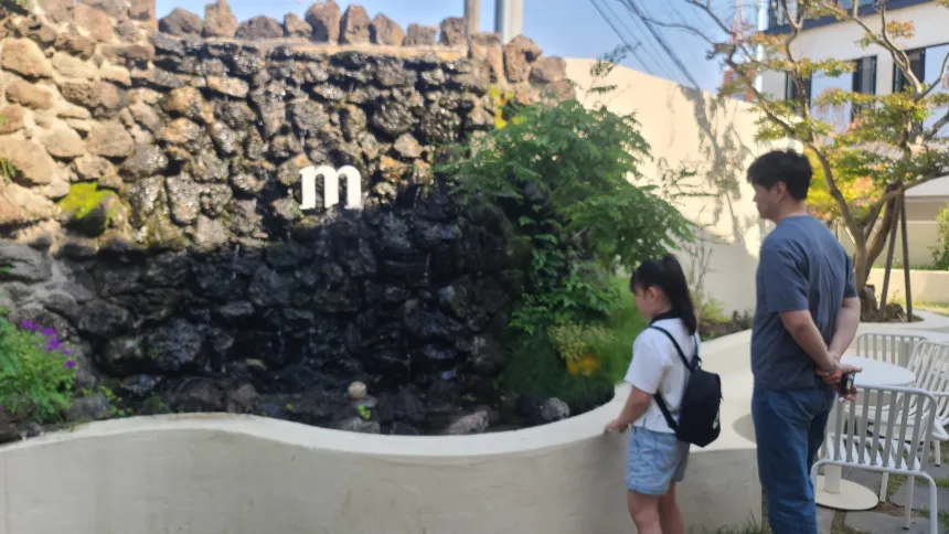 출입구 반대편 문으로 나가면 작은 정원이 보인다. 물도 조르르 흐르고 있다.