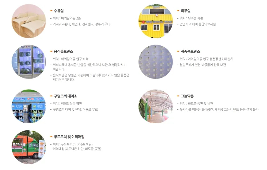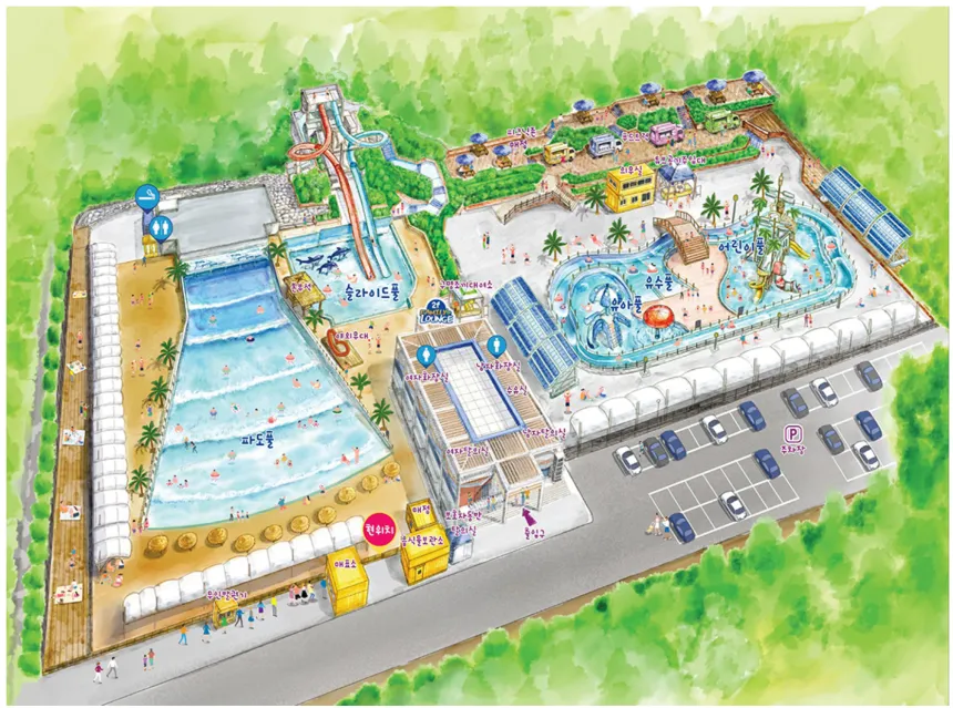• 운영시설: 파도풀, 바디슬라이드, 유수풀, 어린이풀, 유아풀