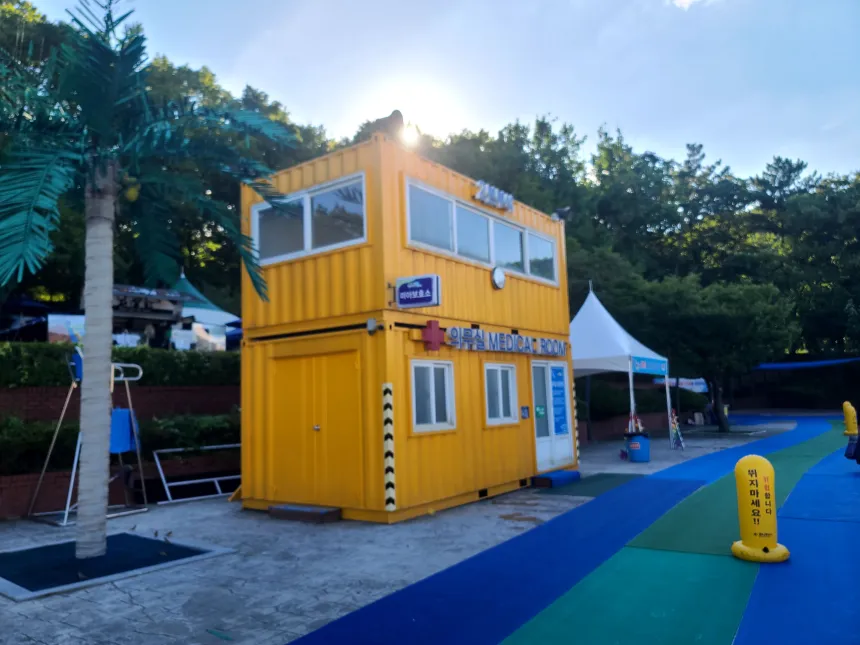 의무실도 운영중이다. 푸드트럭 앞쪽에 있다. 그 옆에는 튜브 공기 주입기가 마련되어 있다.