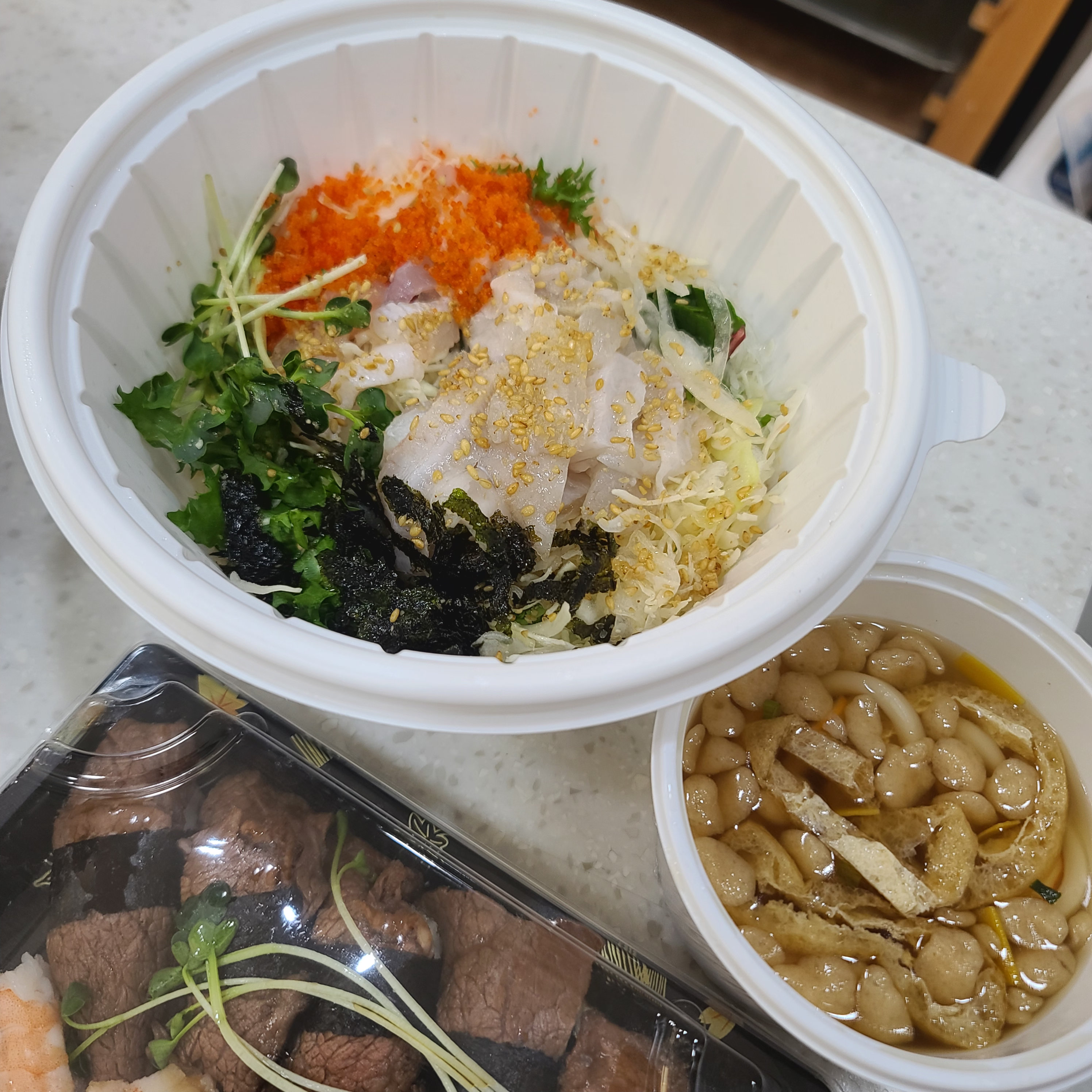 생연어5p + 소고기5p + 미니우동or미니소바 + 미니샐러드