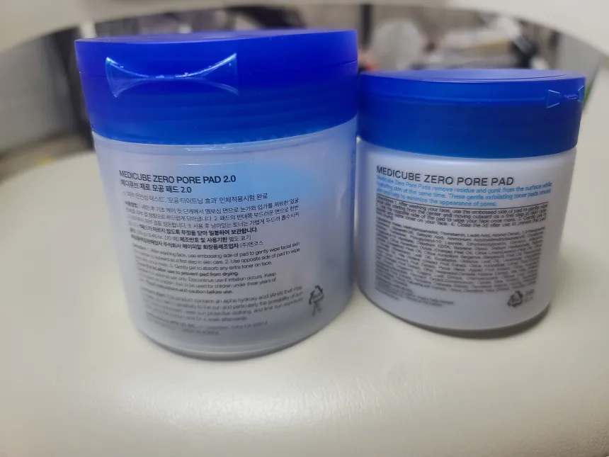 왼쪽은 메디큐브 제로모공패드 가품 박스이고