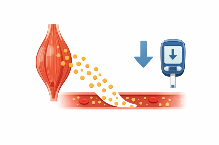 근육은 포도당을 저장하는 주요 조직입니다. 근육량이 증가하면 인슐린 감수성이 향상됩니다.