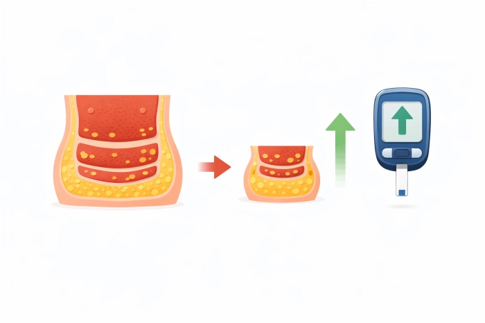 허리둘레 감소는 인슐린 저항성 개선과 직결됩니다. 체중의 5~7%만 감량해도 공복혈당이 의미 있게 감소하는 경우가 많습니다.