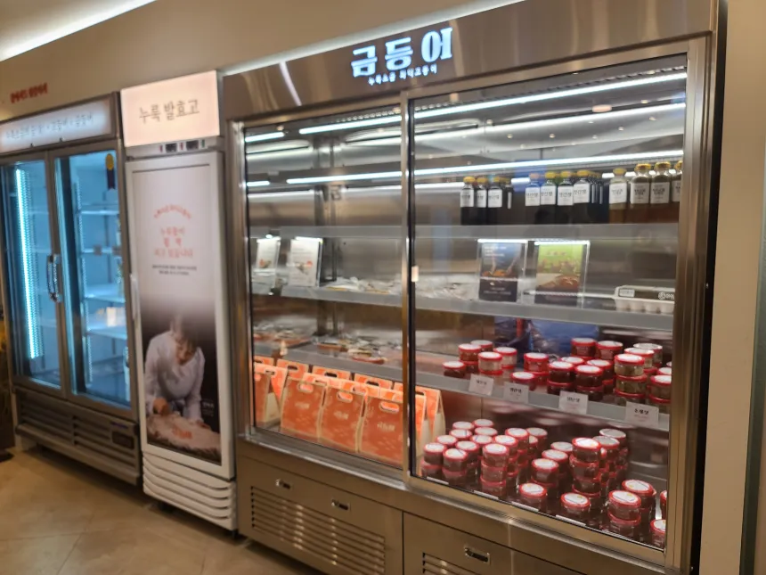 가게에서 판매하는 상품도 있었다. 아이가 보채는 바람에 사진만 얼른 찍어서 자세히 어떤 건지는 못 봤다. 액젓류가 보인다.