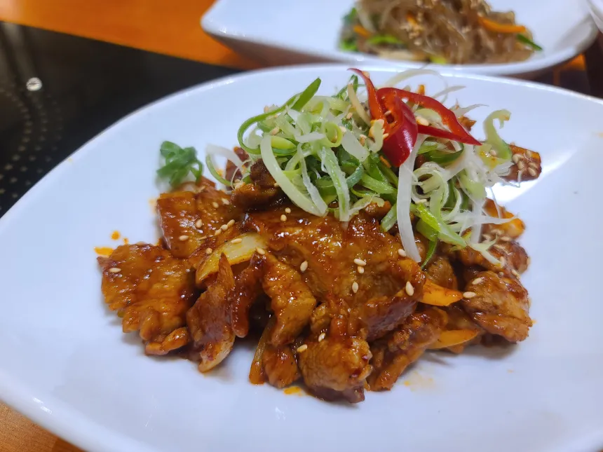 제육볶음은 2인분을 시켰다. 가격이 38,000원인데 푸짐하다는 느낌은 없었다. 그리고 조금 매운맛이라 아이는 잘 먹질 못했다.