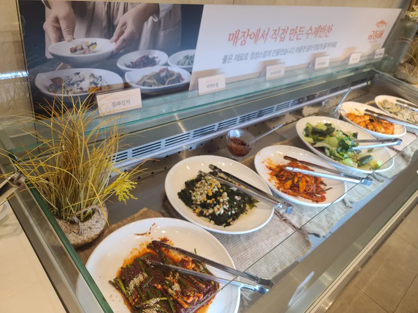 매장에서 직접 만드는 수제 반찬들.. 무한 리필 가능하다.