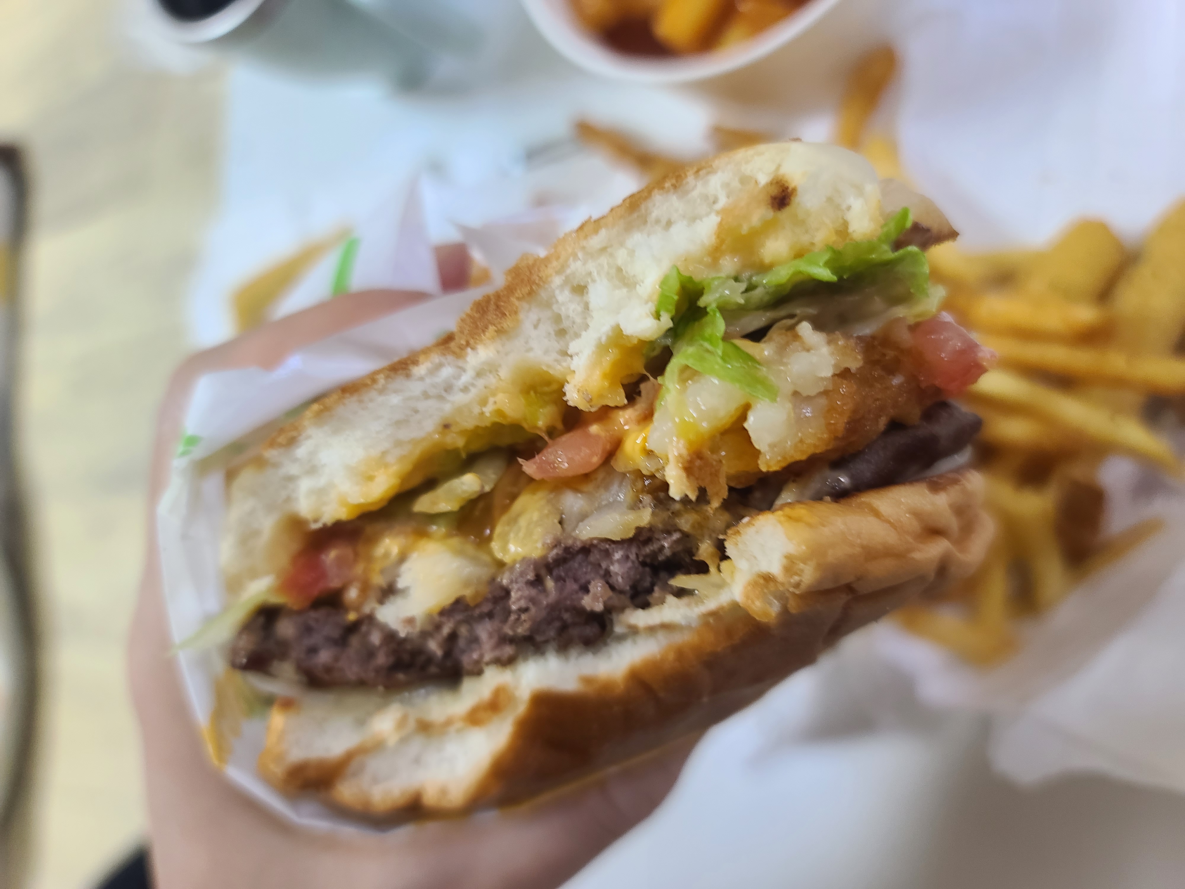 쫀득한 빵과 수제 느낌나는 패티와 속재료들.