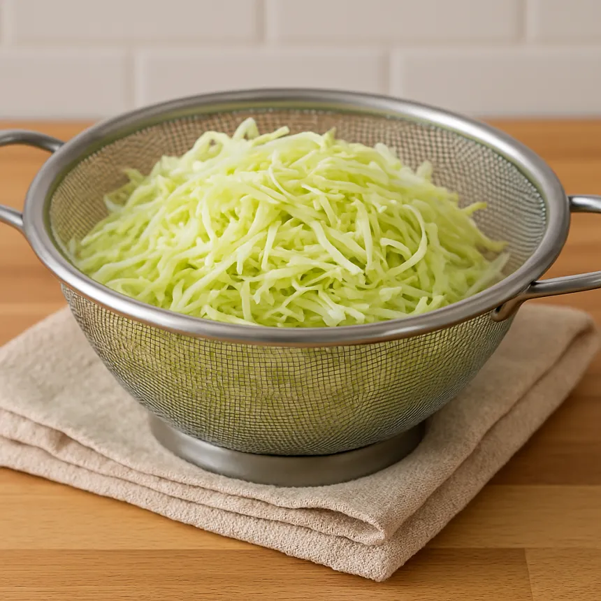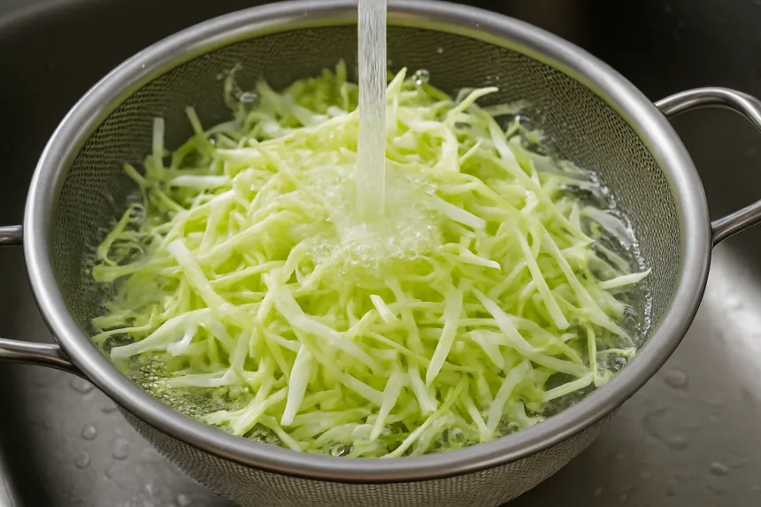 채 썬 양배추는 흐르는 물에 세척해 줍니다.